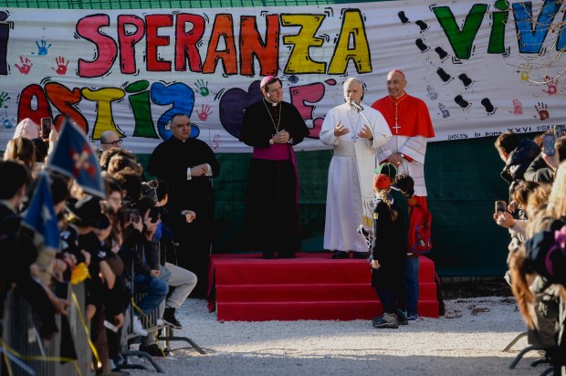 igreja situada às margens do Mar Tirreno, o Papa iniciou a série