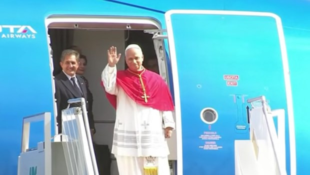 O avião papal que transportava o Papa Leão XIV de Argel para Yaoundé pousou em